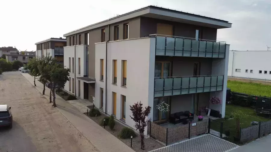- Mieszkania na piętrach z balkonami, nawet dwoma