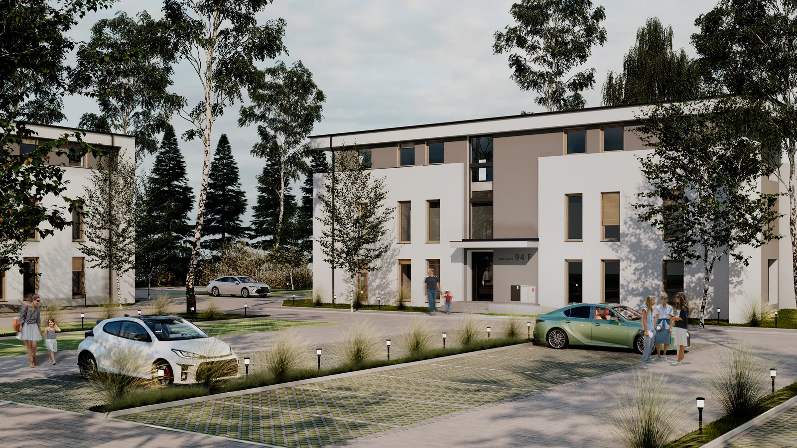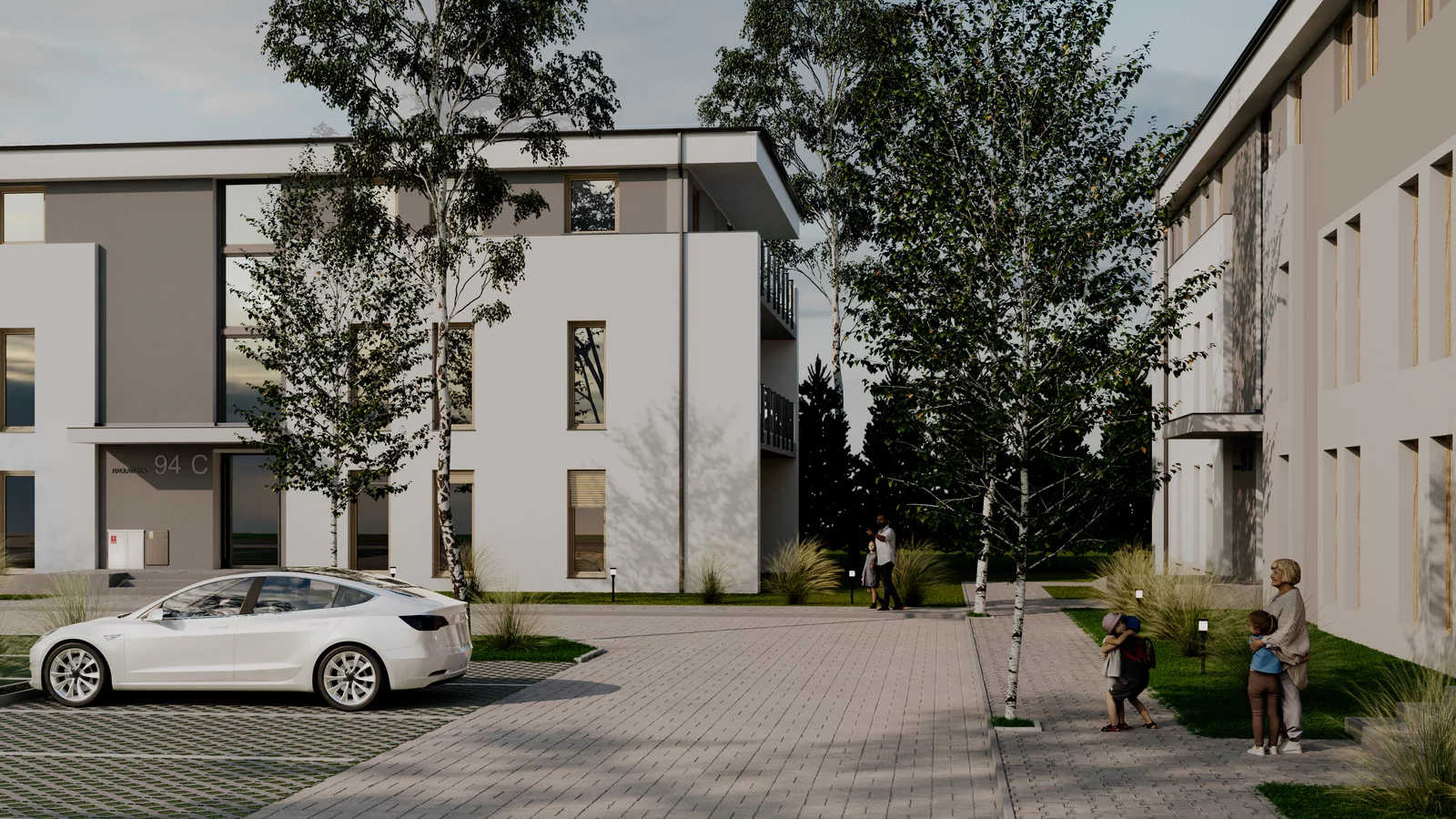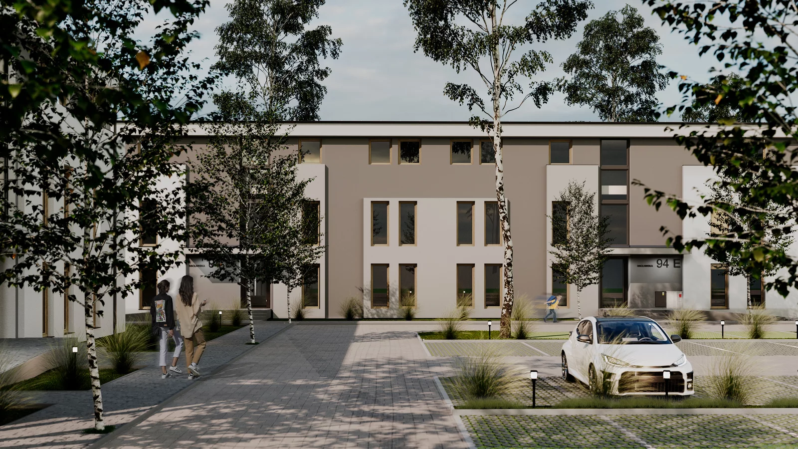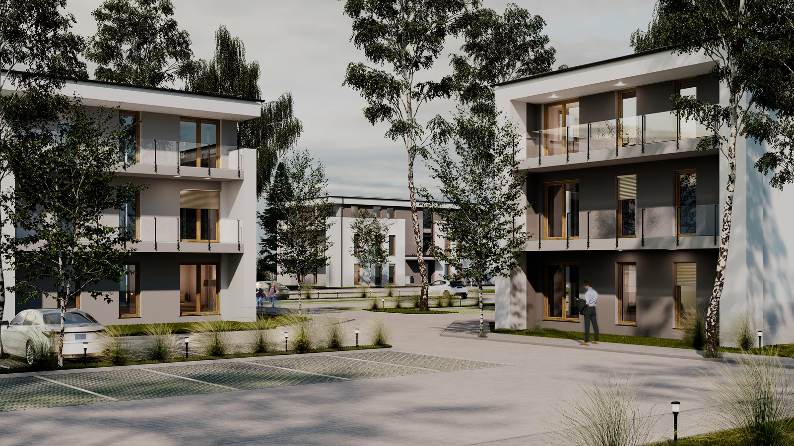 - prywatny parking z oświetleniem i chodnikami,