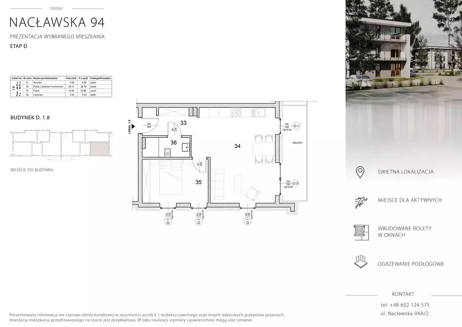 Kameralny, dwupiętrowy budynek wielorodzinny to idealne miejsce dla osób, które cenią sobie wygodę, bezpieczeństwo oraz bliskość najważniejszych punktów miasta. Przyjazne otoczenie sprawia, że zarówno rodziny, jak i osoby aktywne czy inwestorzy znajdą tu coś dla siebie.