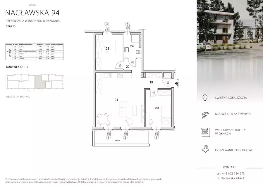 - 24 mieszkania rozmieszczone na trzech kondygnacjach